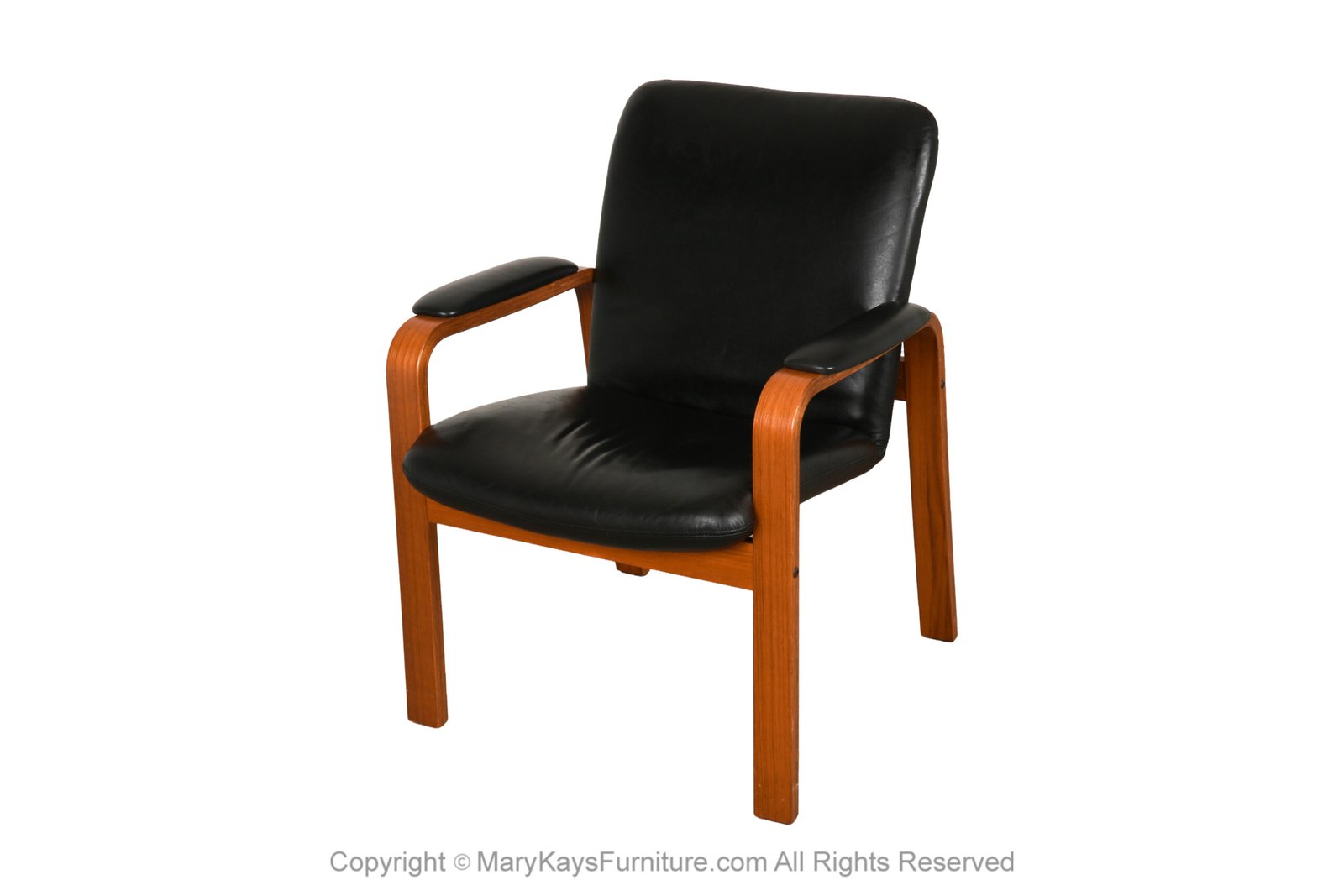 Ekornes Mid Century Teak Black Leather Scandinavian Lounge Chair