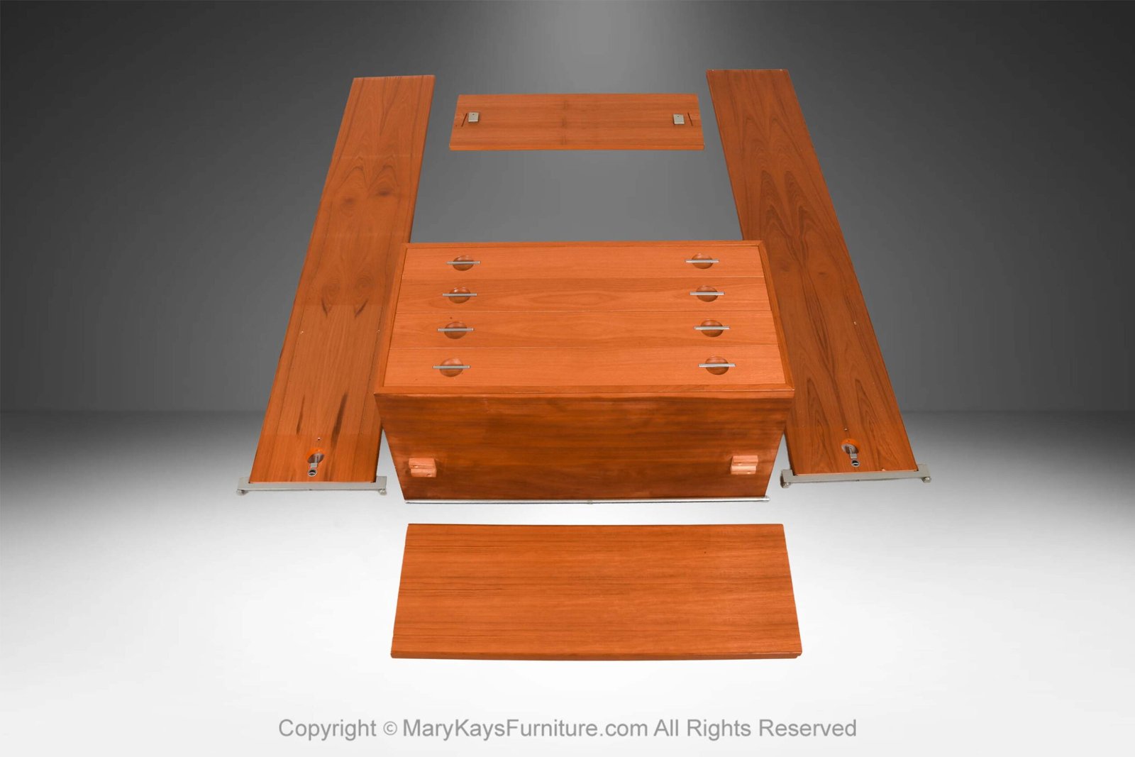 Condition Report: Original finish, exhibits little signs of wear, overall gorgeous surface condition. The base shows well with little wear. Construction is strong and sturdy. This will come disassembled; it will require two people to reassemble.