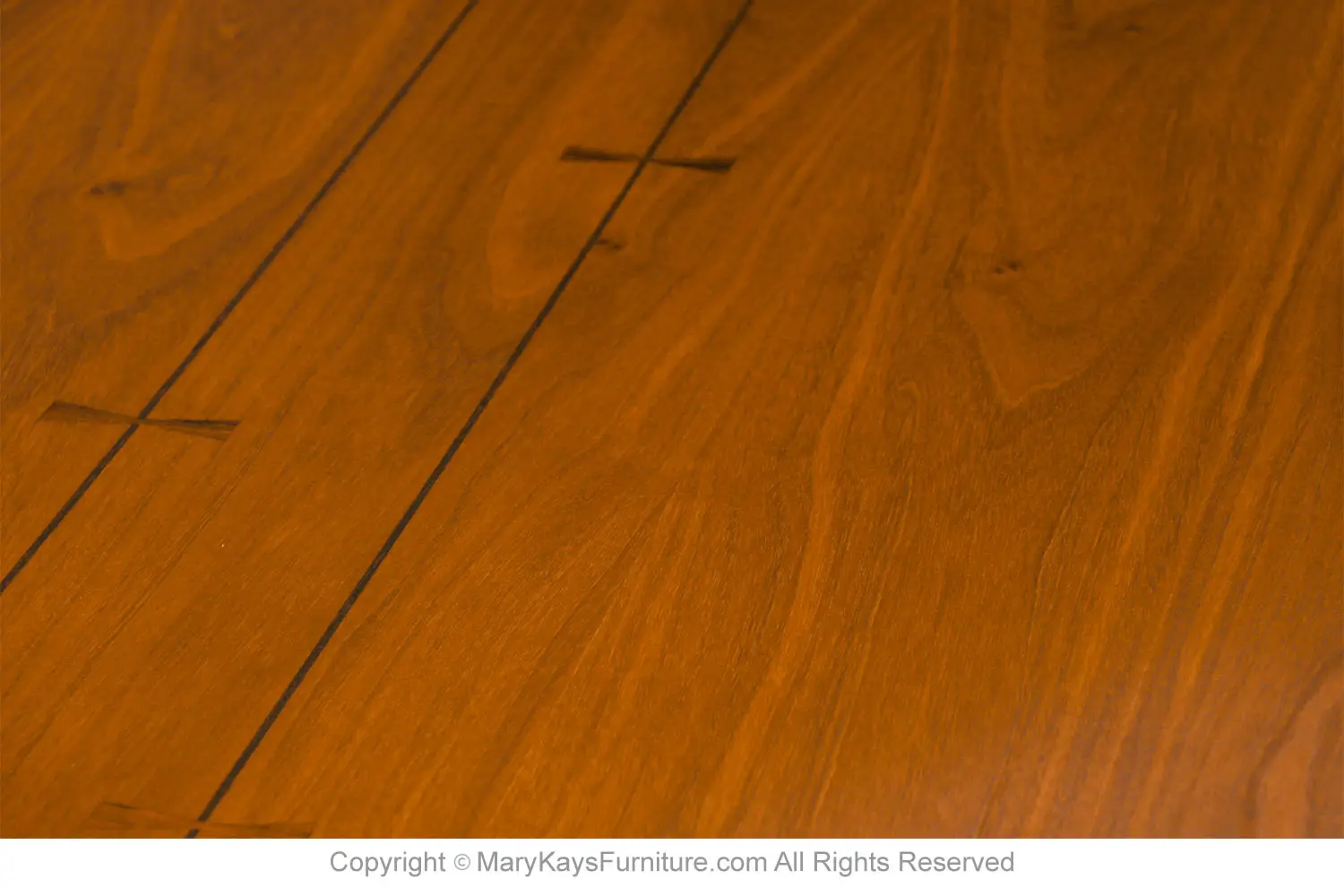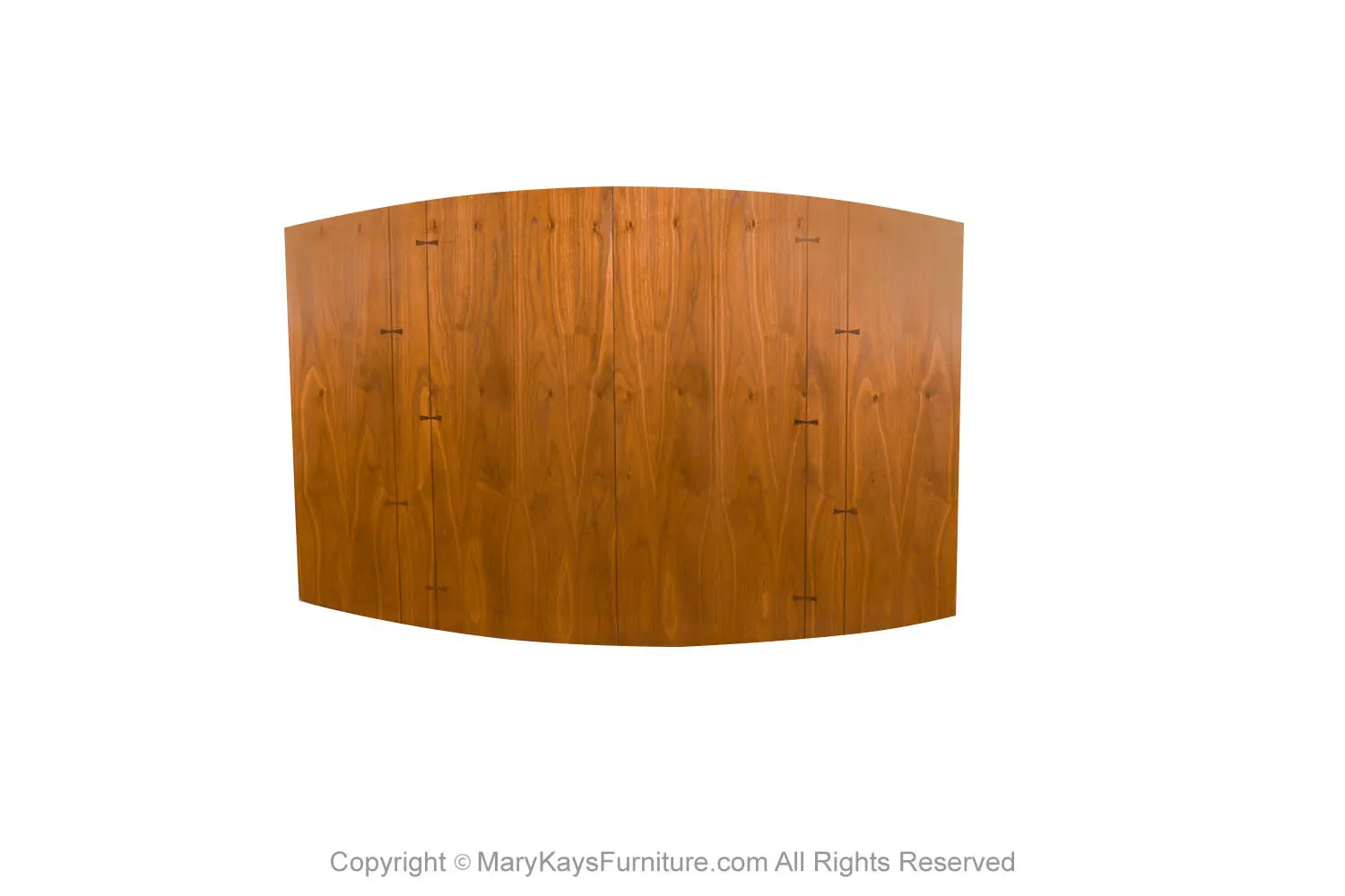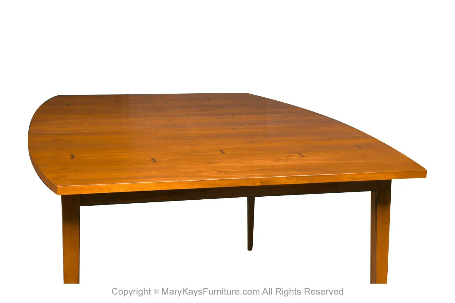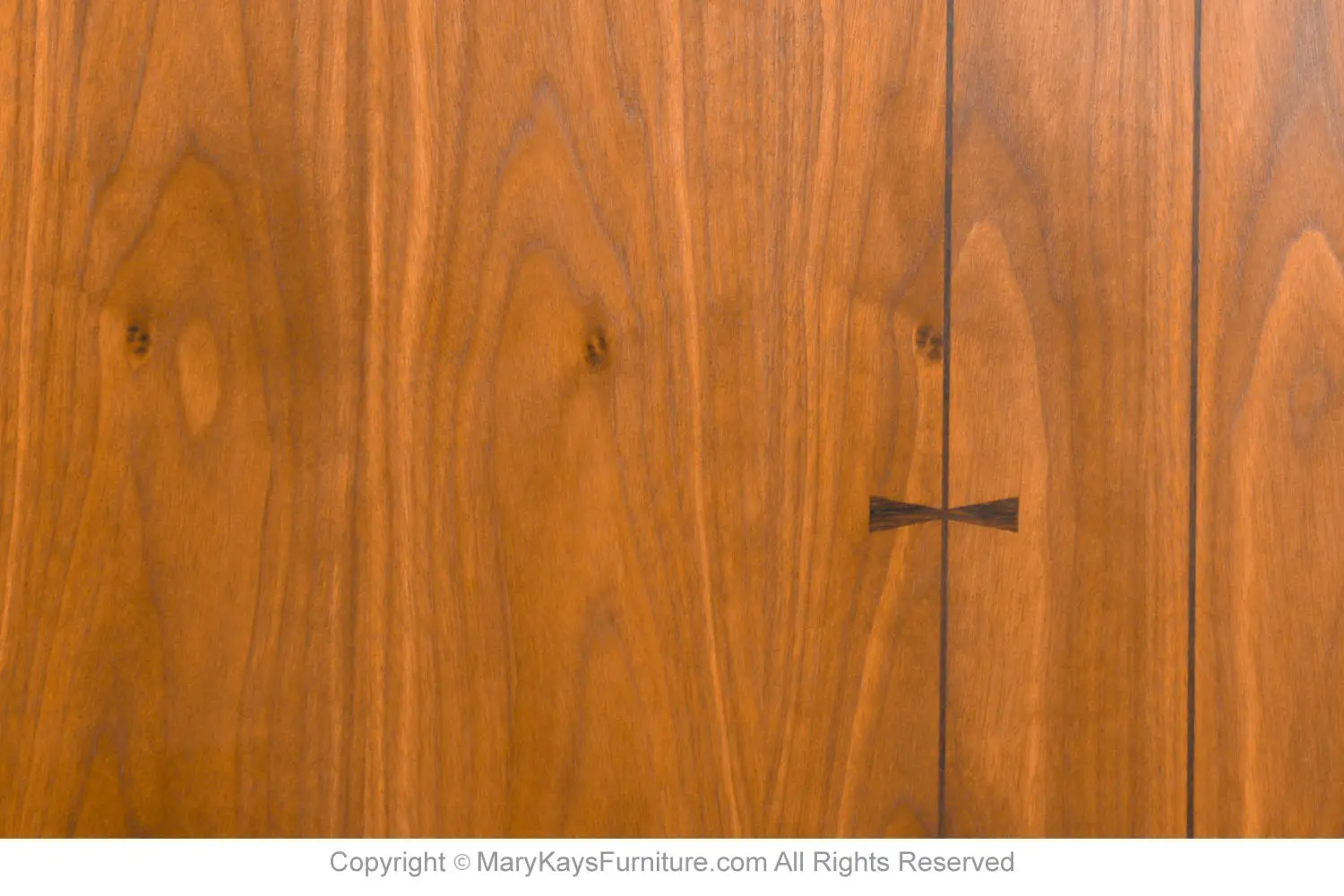 Beautiful Mid-Century Modern expandable, Bow Tie Tuxedo Dining Table, in great original condition, manufactured by Lane. Features richly grained, walnut top clean lines accented with ebony pinstripes and rosewood inlaid bow ties. Raised over four tapered legs, creating a clean and elegant profile. This remarkable dining table comes with one extension leaf to accommodate extra seating, transforming seating capacity from four to six. With one leaf inserted, this table expands to n74_ long! Well-crafted, fully extended, it becomes a large table and without the leaf the table is a perfect size for small areas, measuring 62_ wide characteristically sleek and functional and exudes an aesthetic beauty as well making it perfect for the modern interior. Also, available walnut Dining chairs (sold separately). Perfect table for a kitchen or dining room, and due to size flexibility, will function wonderfully in a small or large space. nCondition Report: Base is stable and sturdy; wood shows minimal wear; extension hardware operates smoothly. n n nCreator: Lane (Manufacturer) nOf the Period: Mid-Century Modern nPlace of Origin: United States nDate of Manufacture: 1960s nPeriod: 1960-1969 nMaterials and Techniques: Walnut nCondition: Good nWear: Wear consistent with age and use nMeasurements: 62” W x 42” D x 29 1/2” T; fully extended 74” W with the leaf n