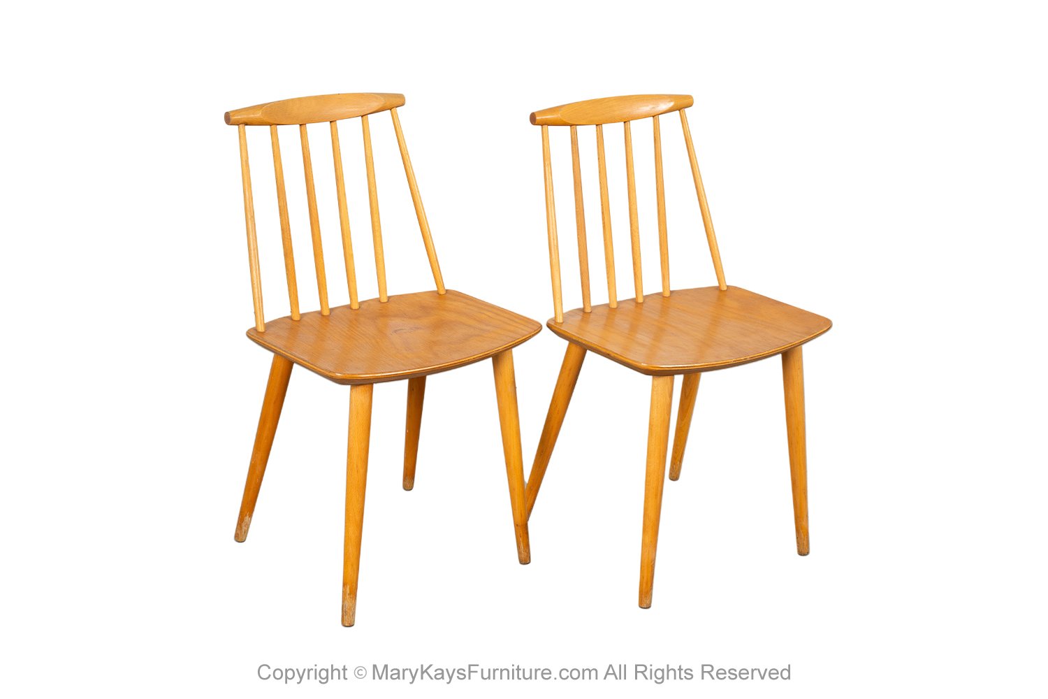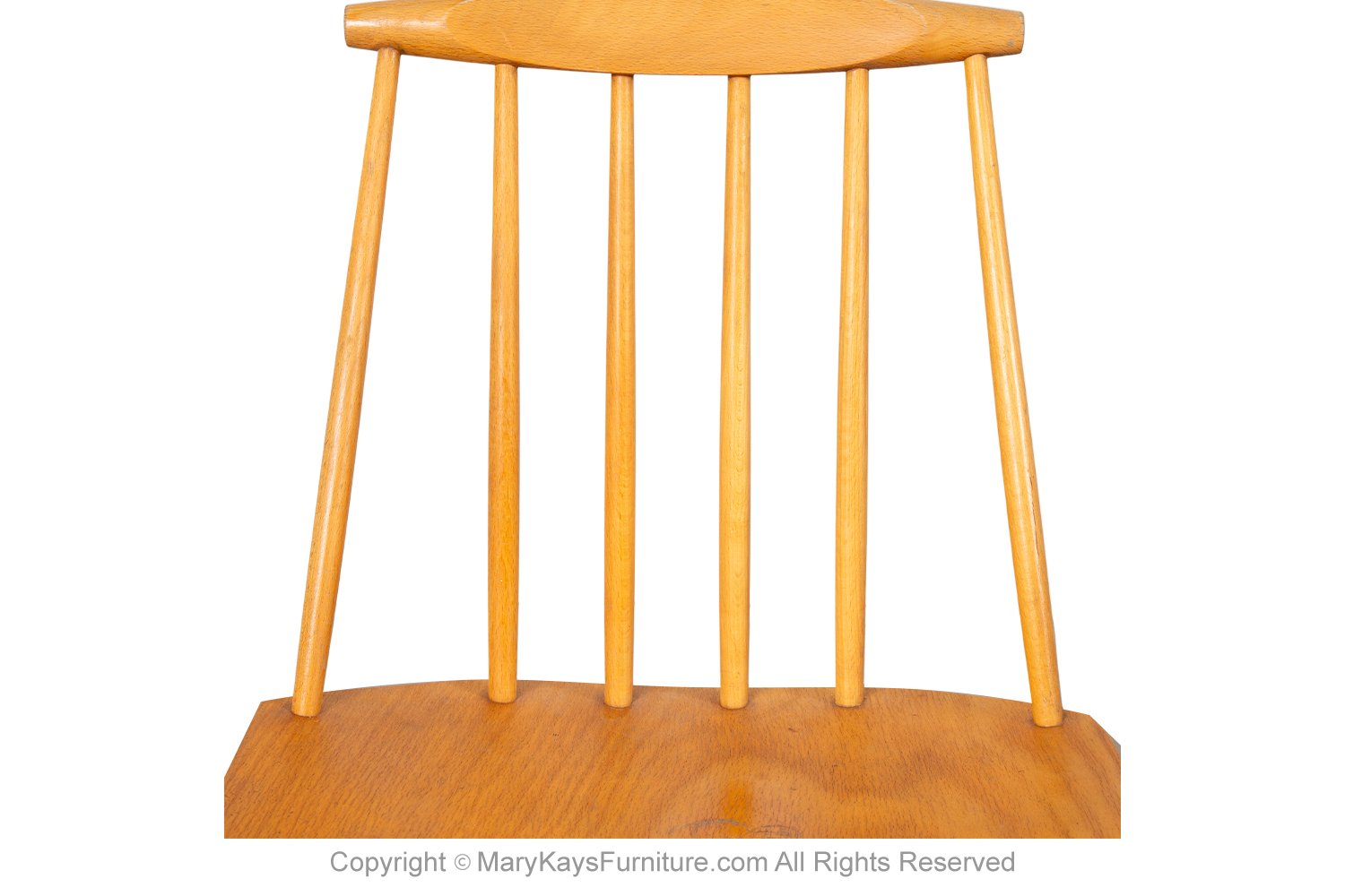 Beautiful set of six, Spindle Back, model J77 Chairs by Folke Palsson for FDB Mobler, Denmark circa 1970’s. They are of solid wood construction featuring a concave serpentine crest rail above six turned spindles. The scooped seat is nicely formed with a shaped saddle seat resting on splayed turned legs. The maker’s stamp identifies the date of manufacture 1977, on the underside of each seat. (F. D. B. made in Denmark). Classic, simple petite design, iconic of Danish Modern design. Perfect for smaller spaces. They are stunning and a fine selection for any interior where the distinctive style can be appreciated.