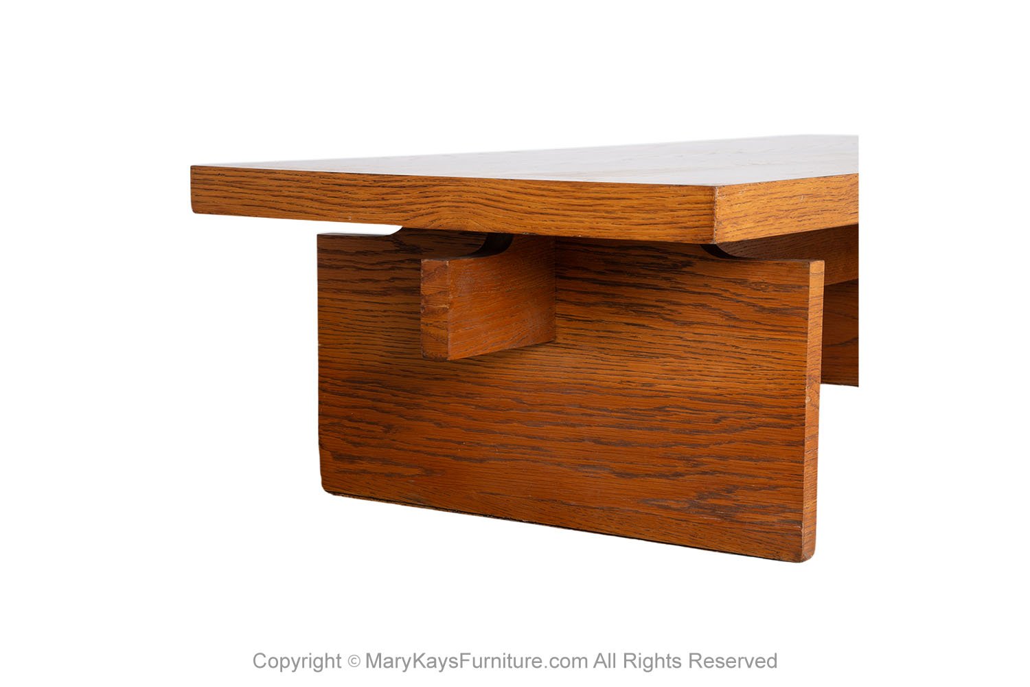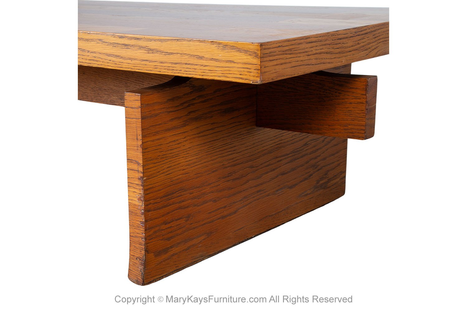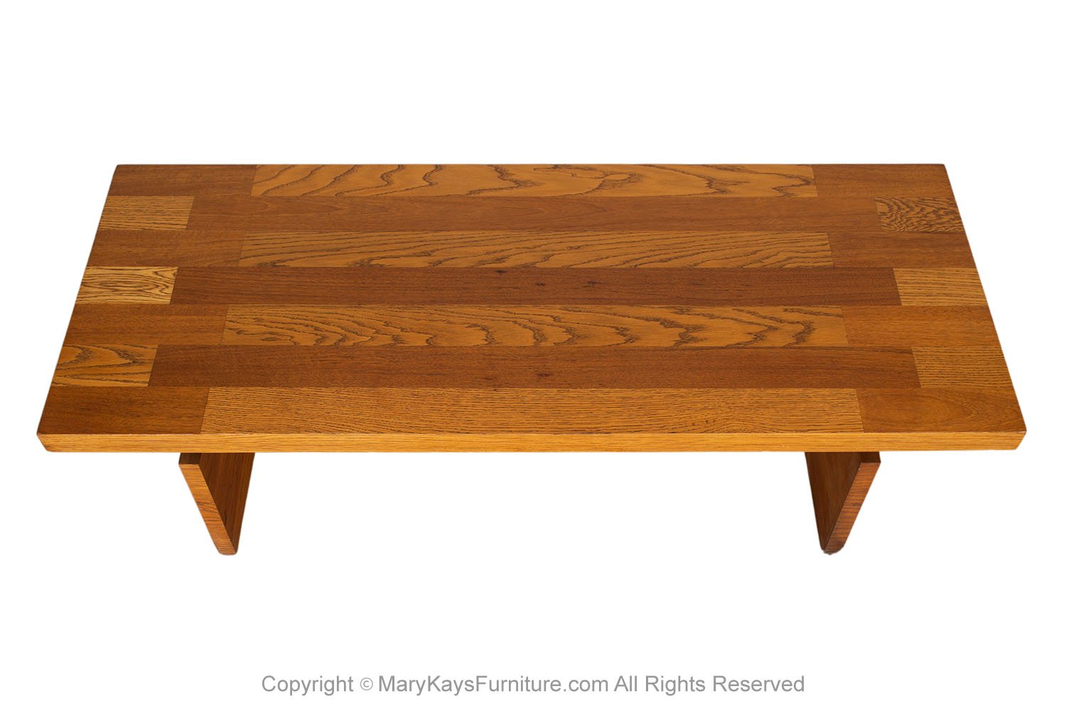 A beautiful coffee table /bench by Lane Furniture Co. in a chunky Brutalist style. Featuring semi parquet oak on top, in a vivid contrast against the surface, with a dramatic, wide square top resting on a trestle style base. Extremely versatile with solid architectural design elements. Strong and sturdy, shows true quality craftsmanship by Lane Furniture Co. Add style and function to your living room or bedroom, the wide square top provides plenty of space for placing items. Hearty American construction. Lavish proportions, premium construction and beautiful materials have created an enduring legacy of American mid-century furniture. nCondition Report: Original finish, exhibit little signs of wear, with typical scuffs, overall gorgeous surface condition. Construction is strong and sturdy. n nCreator: Lane Furniture (Manufacturer) nOf the Period: Post-modern nPlace of Origin: United States nPeriod: Late 19th century nMaterials and Techniques: Wood nCondition: Good nWear: Wear consistent with age and use nMeasurements: 15 1/2” tall x 60_ wide x 24_ deep n n
