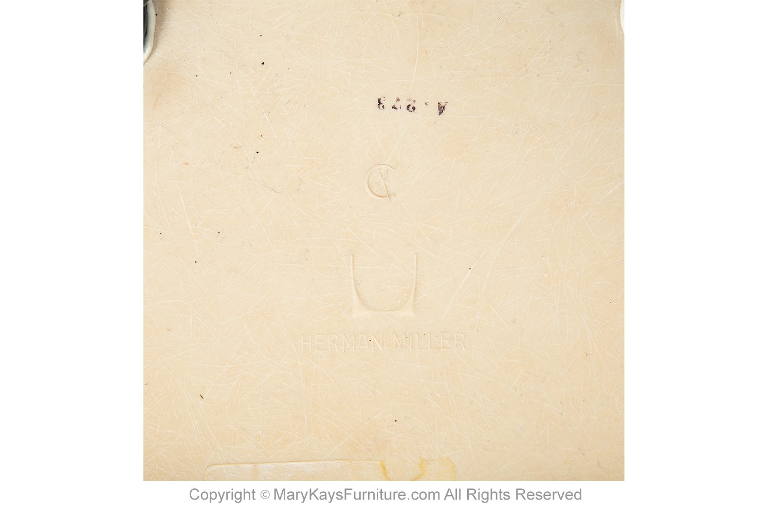 A pair of Mid-Century Modern fiberglass swivel armchairs designed by Charles Eames for Herman Miller. The fiberglass molded bucket tub chair with arms, raised on a fixed aluminum X base with swivel fitting. Also retains Herman Miller stamp underside. Charles and Ray Eames introduced their original fiberglass shell chair for Herman Miller in the 1950s. This later 1960s iteration of the armchair features a molded shell seat on a swiveling base. nCondition Report: Frame is in good structural condition, shows well, light fading and wear shown in photos with stain shown in photo. Construction is strong and sturdy. n nCreator: Charles Eames (Designer) nOf the Period: Mid-Century Modern nPlace of Origin: United States nPeriod: 1959-1989 nMaterials and Techniques: Fiberglass, Aluminum nWear: Wear consistent with age and use nMeasurement: 31 3/4″ height x 24 5/8″ width x 22.5″ depth x 17 1/4″ seat height n n
