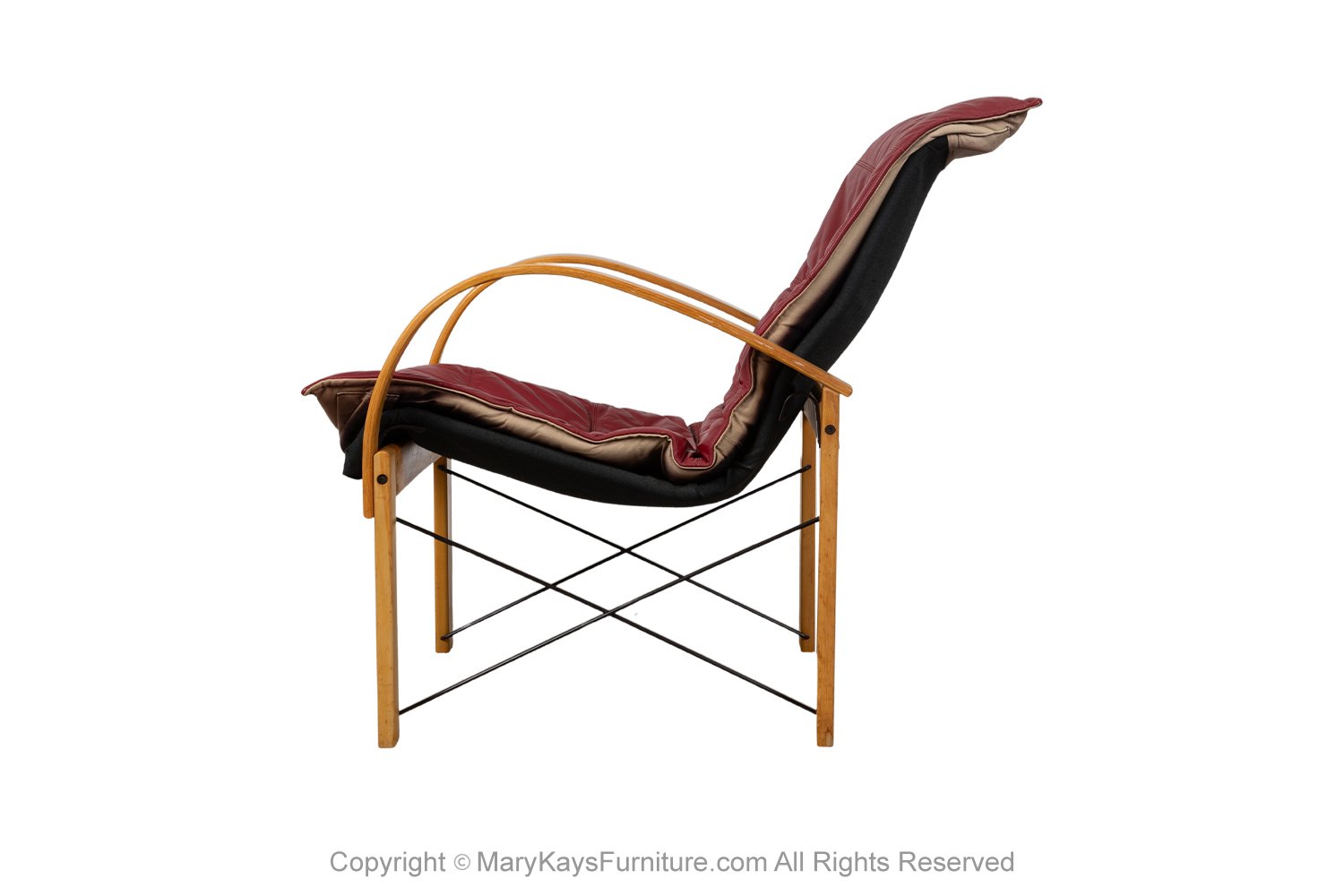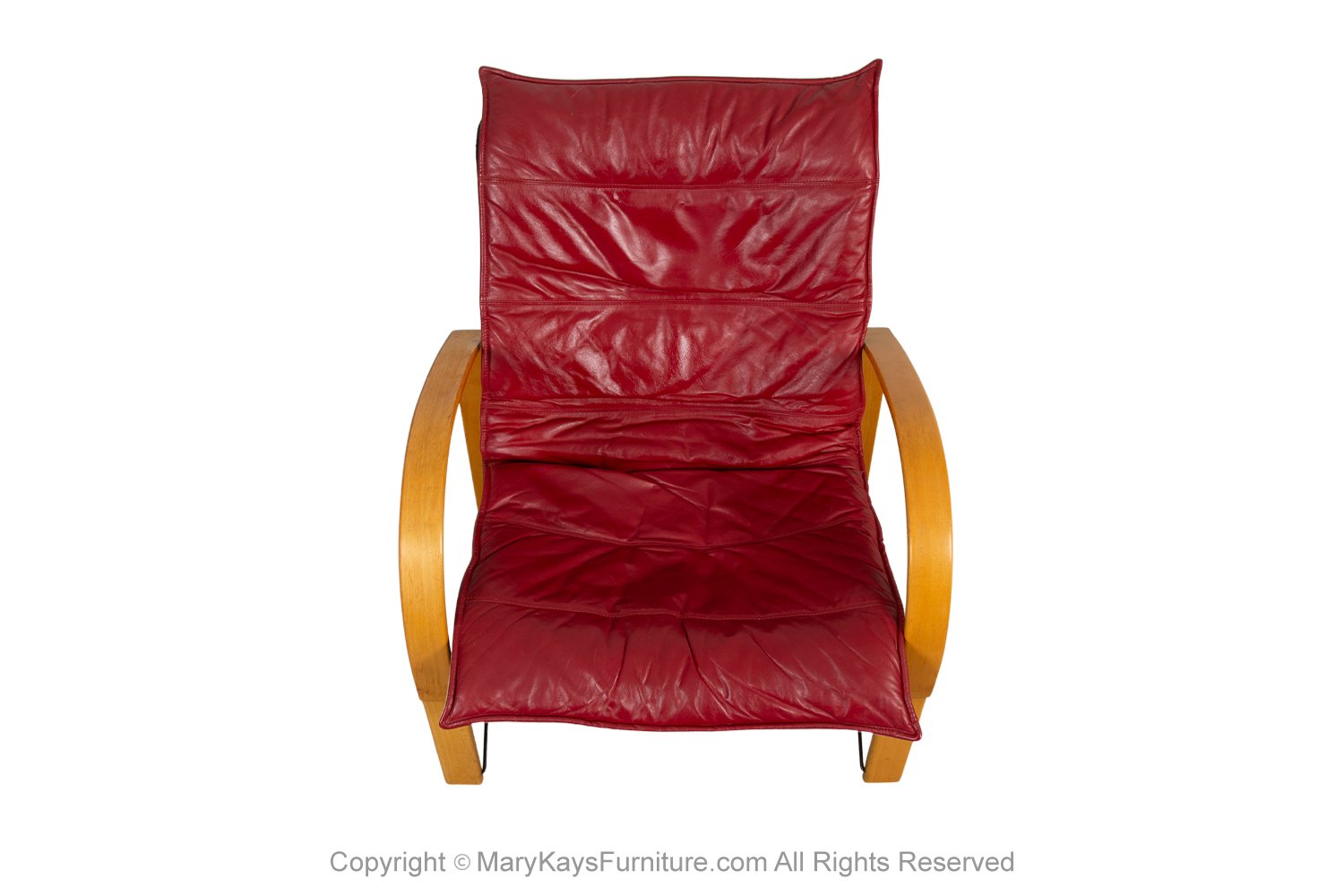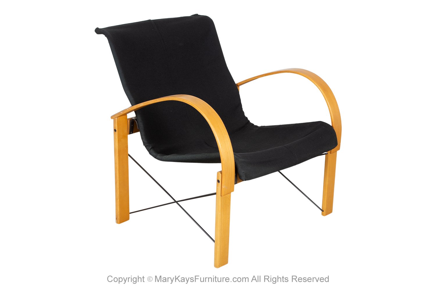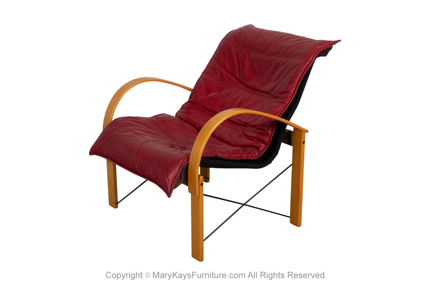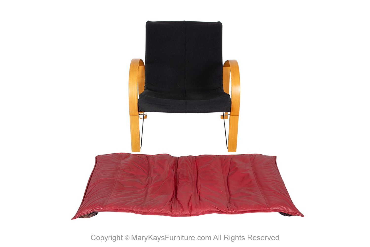 A gorgeous postmodern design armchair in the style of the model ‘Polhem’ designed by Tord Bjorklund for Ikea in the 1980s. Features bentwood frame supporting loose upholstered cushion in leather. Great modern form with continuous curved arm to leg design, making an extremely comfortable, supportive frame. The chair is very well-crafted, comfortable and very sturdy and will certainly make a powerful impression on clean and modern interior décor. This beautiful chair has been attributed based on archival documentation such as design records and vintage catalogs.