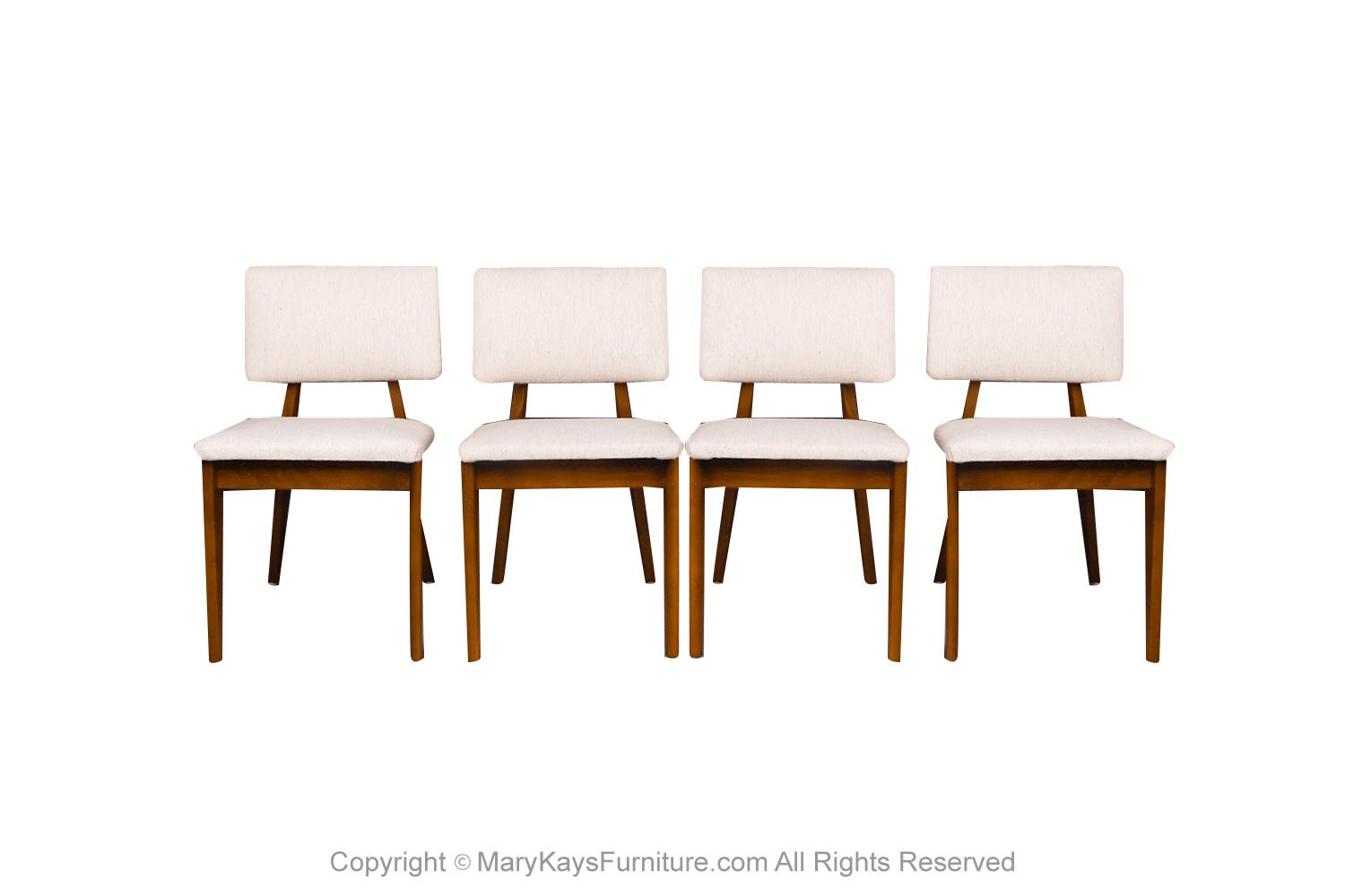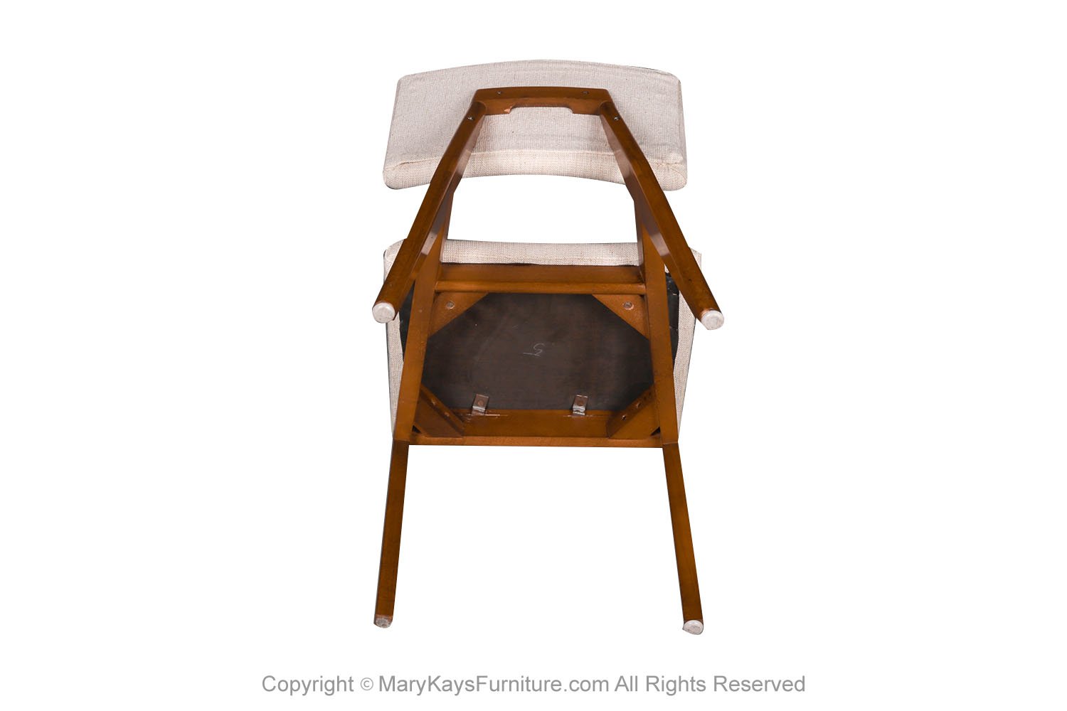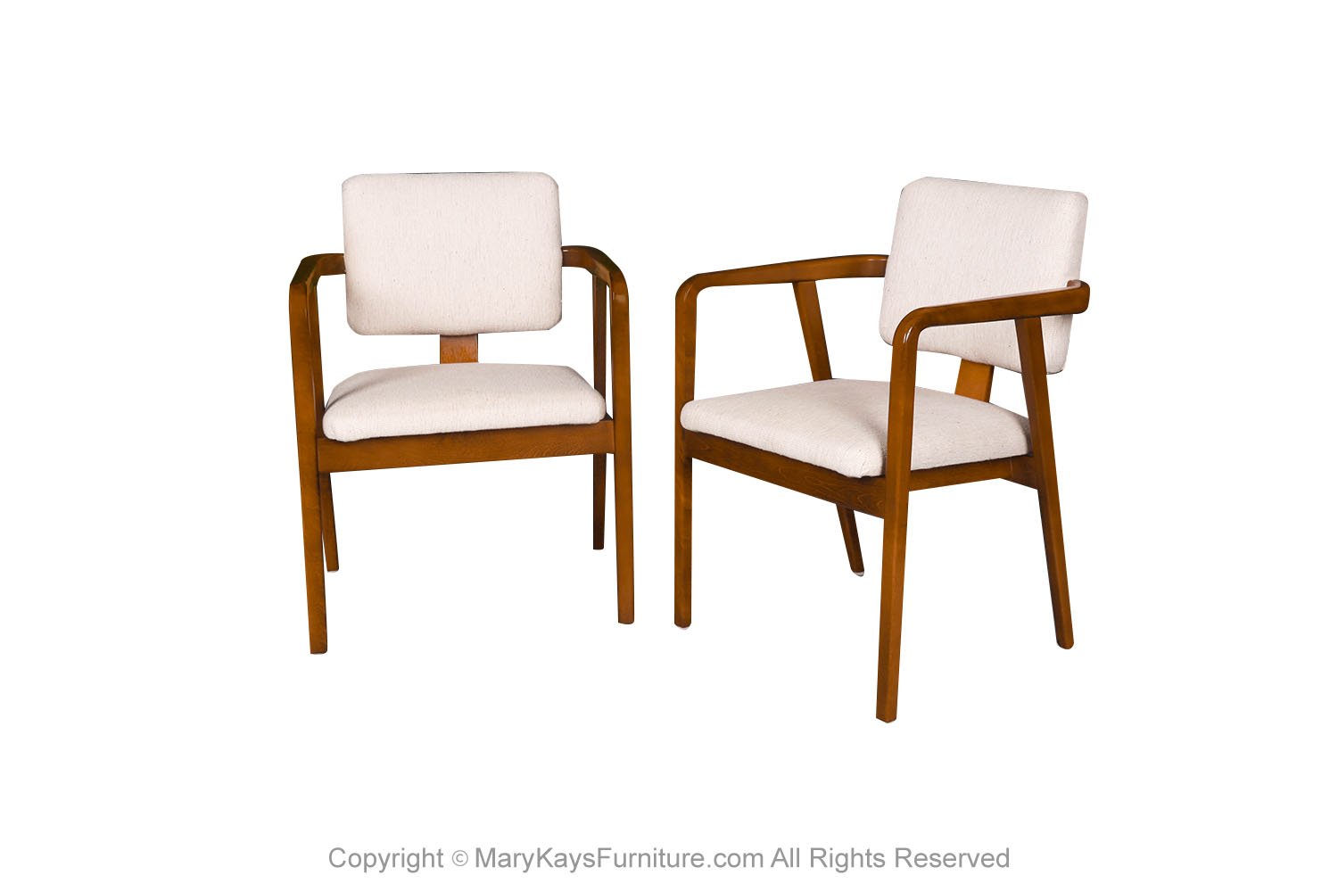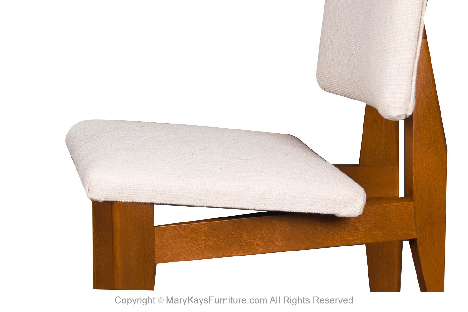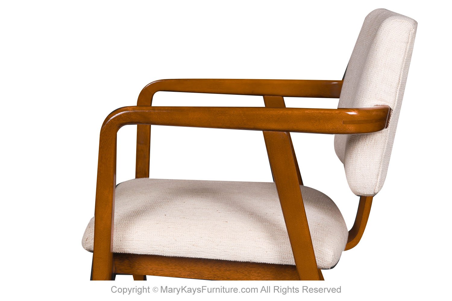 Remarkably, Iconic, stunning and extraordinarily rare set of six Model 4663 dining/side chairs, two armchairs and four side chairs by Earnest Farmer with George Nelson & Associates for Herman Miller, circa 1960. This classic and unique Mid-Century Modern set features a full matching set of six, two which are arm chairs, each remaining in original condition throughout. Features durable frames with sculpture backrests, and padded high density seats, with tapered splayed legs. The arm chairs are beautifully proportioned and feature softly curved and carved arms that float gracefully down the side of the seat and terminate at the splayed legs. They remain in good vintage condition and are comfortable. The rich solid frames are very sturdy and have exceptional stunning wood grain throughout. The sculpted and formed details are what makes them so desired, very modern and elegant. The set would look amazing around a dining room table, or as side chairs. Also, available is a matching Dining table (sold separately). nCondition Report: Original finish wear consistent with age and use, overall gorgeous condition. Construction is strong and sturdy. The upholstery is in great condition, no tears or rips in fabric. n nDesigners: George Nelson & Earnest Farmer nManufacturer: Herman Miller nOf the Period: Mid-Century Modern nPlace of Origin: USA nDate of Manufacture: 1960s nPeriod: 1950-1959 nMaterials and Techniques: Wood, Upholstery nCondition: Good nWear: Wear consistent with age and use nMeasurements: H 30 1/4″ tall x 21″ deep in. x 17″ wide seat 18″ tall Arm chair 31.5″ tall x 23 3/8″ Deep x 23″ wide arm height 25 1/2″ tall seat 17″ tall n n