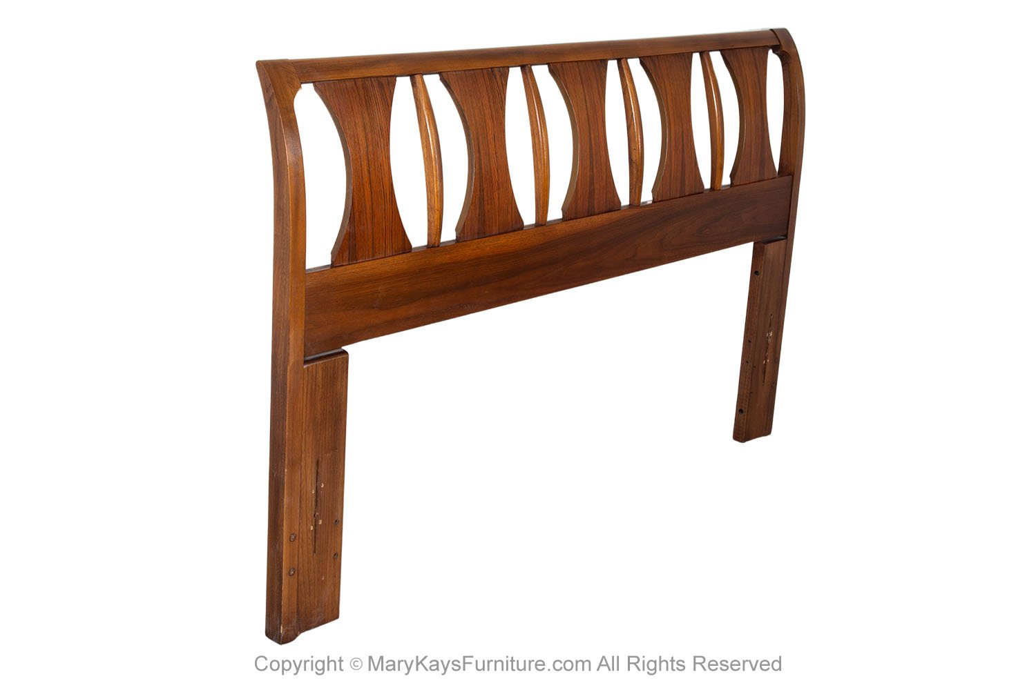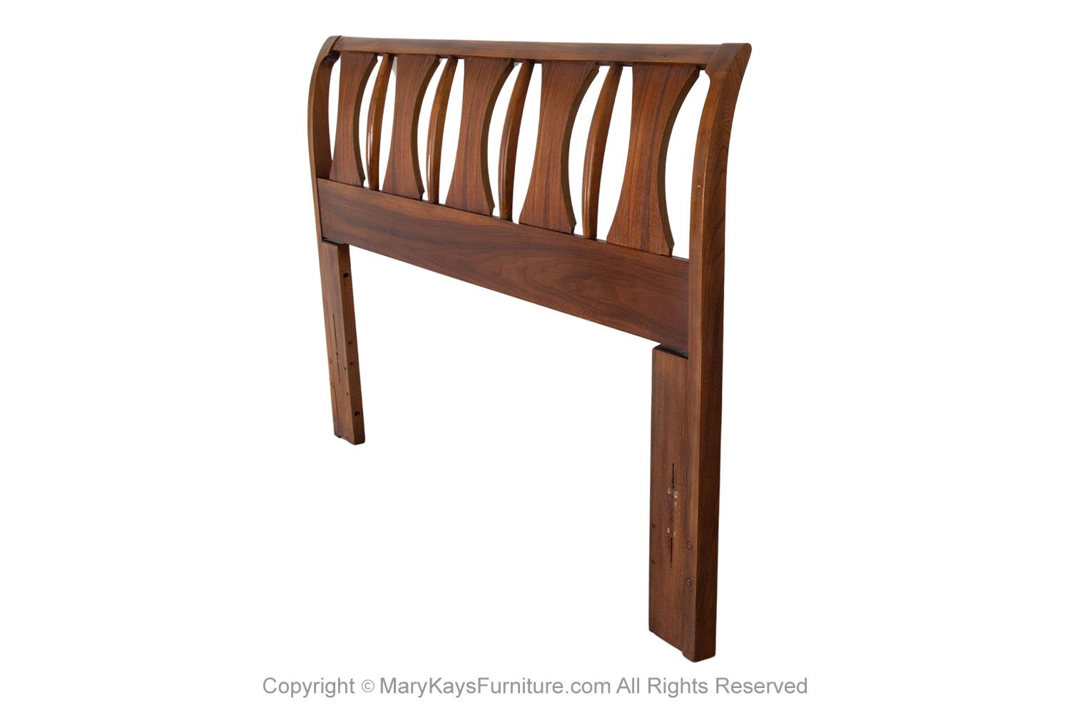 A remarkable mid-century walnut and rosewood Queen-size headboard by Kent Coffey in nearly pristine condition. Exceptional construction and style, features Kent Coffey’s iconic design with five sculpted rosewood hourglass-shaped panels, accented with a beautiful walnut frame. Can be hooked to the bed frame or the bed can be leaned up against the frame. Kent Coffey’s “Perspecta” collection displays beautiful design and bold elements. Kent Coffey is renowned for long lasting and stunning pieces of furniture and is notable for their bedroom and living room sets. Matching tall and long dresser available (sold separately). nCondition Report: Original finish, exhibit little signs of wear, with typical scuffs, overall gorgeous surface condition. Construction is strong and sturdy. n nCreator: Kent Coffey (Maker) nOf the Period: Mid-Century Modern nPlace of Origin: United States nDate of Manufacture: 1970s nPeriod: 1970-1979 nMaterials and Techniques: Rosewood, Walnut nCondition: Good nWear: Wear consistent with age and use nMeasurements: 60″ wide x 38 1/2″ tall x 3″ deep n n